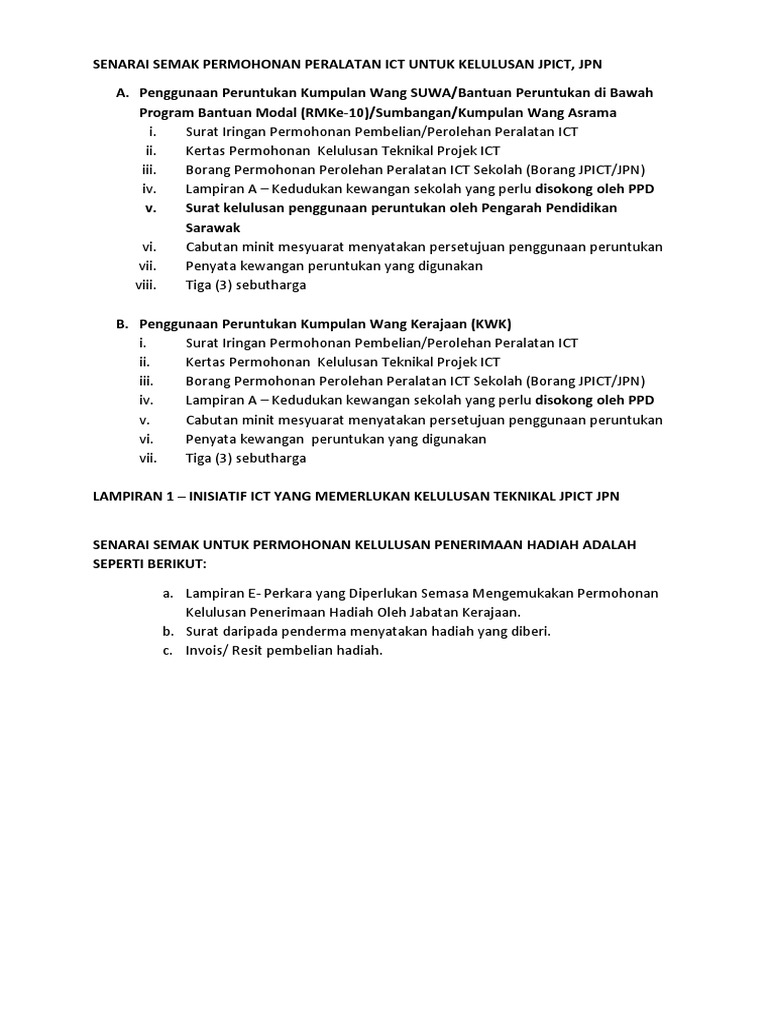 Senarai Semak Permohonan Peralatan Ict Untuk Kelulusan Jpict Dan Kelulusan Penerimaan Hadiah Pdf